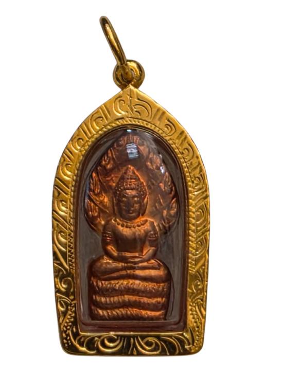 พระนาคปรกทองแดงหลวงพ่อคูณ คูณพันล้าน เลี่ยมทอง