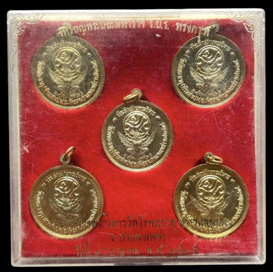 เหรียญร.5 จปร ทรงครุฑ ชุดกรรมการ เนื้อกะไหล่ทองลงยา ที่ระลึกสร้างวิหารวัดวังพระธาตุ จ.กำแพงเพชร พิธีใหญ่ ปี2535 ตอกโค๊ตทุกเหรียญ สภาพสวย มาพร้อมกล่องเดิมๆ