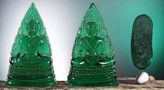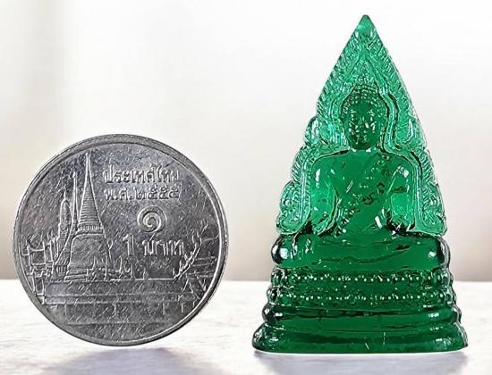 พระพุทธชินราช หลวงพรหมโยธี วัดพระศรีรัตนมหาธาตุ พิษณุโลก เนื้อแก้ว (สีเขียว) ปี2493 + พิธีจักรพรรดิ์มหาพุทธาภิเษก ปี 2515 เจ้าคุณศรีสนธิ์ปลุกเสก สวยครับ