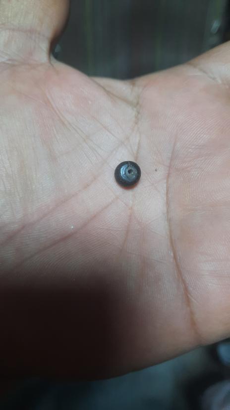 เม็ดปะคำเนื้อผงแกนตะกั่วลงรักดำ ไม่ทราบที่