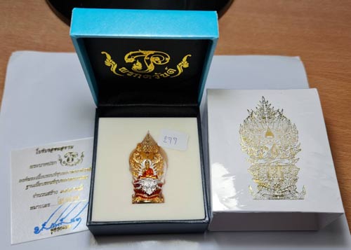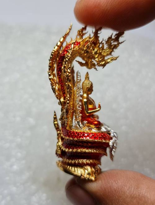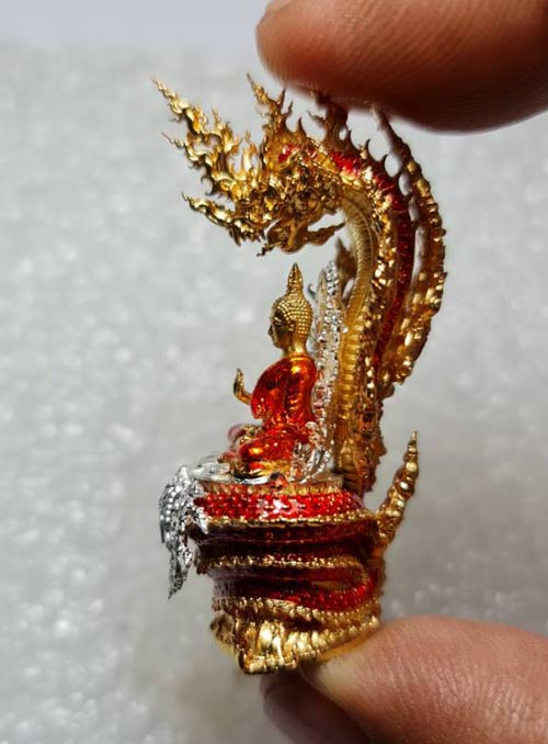 พระนาคปรก รุ่น "พรภควันต์" วัดลอน พัทลุง รายการที่ 9 องค์พระบรอนซ์ชุบเงินลงยาจีวรสีส้ม ฐนนากบรอนซ์ชุบทองลงยาแดง หมายเลข 277 พร้อมกล่องเดิมๆครับ (จอง 1,600)