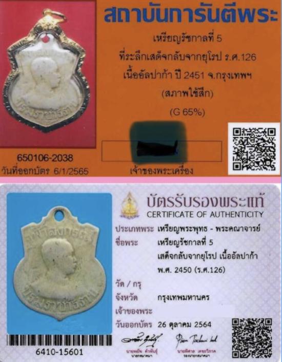 บัตรรับรอง ๒ สถาบัน เสด็จพ่อเสด็จกลับ+เลี่ยมทอง