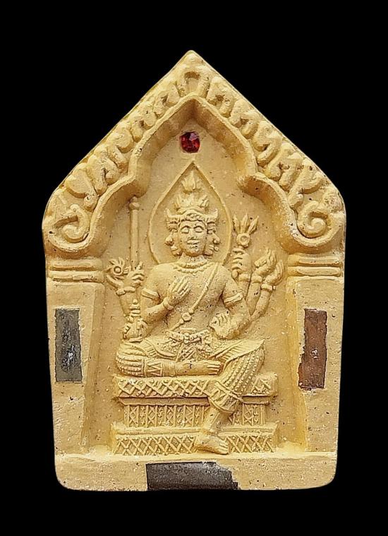 พระพรหม เนื้อผงว่านเหลืองมหาเศรษฐี หลวงปู่หงษ์ พรหมปัญโญ ฝังตะกรุด 3 กษัตริย์ รุ่น โชคดีมีสุข" ปี47 |