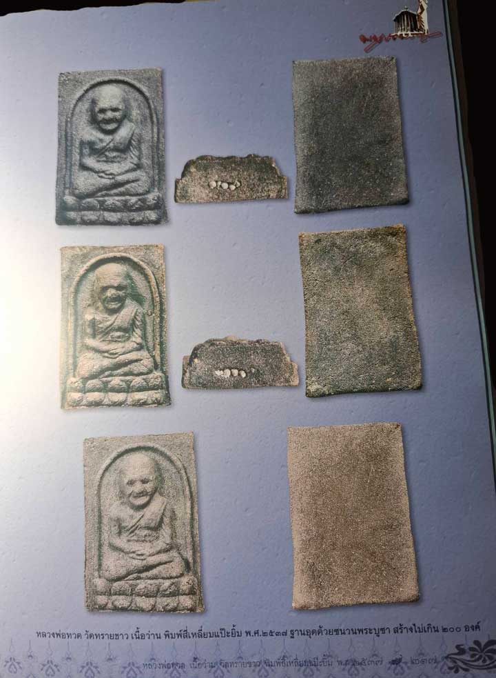 ชื่อพระเครื่อง หลวงพ่อทวดเนื้อว่าน พิมพ์สี่เหลี่ยมแป๊ะยิ้ม ฐานอุดด้วยชนวนพระบูชา พ.ศ. 2537 สร้างไม่เกิน 200 องค์
