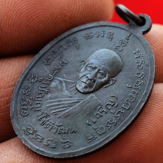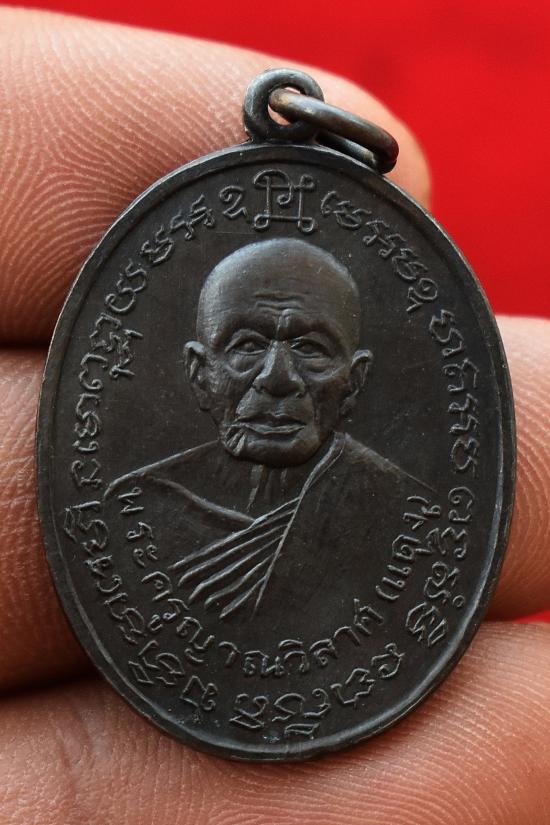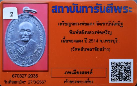 เหรียญหลวงพ่อแดง วัดเขาบันไดอิฐ บล็อกตาราง (นิยม) พิมพ์หลังหลวงพ่อเจริญ เนื้อทองแดง ปี 2514 จ.เพชรบุรี (วัดพลับพลาชัยสร้าง) + บัตรรับรองพระแท้การันตีพระ
