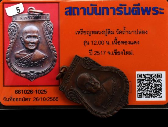 เหรียญเสมา เที่ยงตรง รุ่น 12.00 น. เนื้อทองแดง ปี 2517 หลวงปู่สิม วัดถ้ำผาปล่อง จ.เชียงใหม่ + บัตรรับรองพระแท้การันตีพระ
