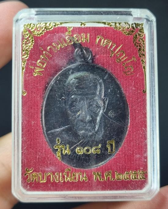 เหรียญรูปไข่จีวรพาดสังฆาฏิ รุ่น 108 ปี(รุ่นสุดท้าย) พ่อท่านเอื้อม วัดบางเนียน จ.นครศรีธรรมราช จัดสร้างในปี 2555 เป็นเหรียญรูปไข่จีวรพาดสังฆาฏิ เหรียญรูปไข่จีวรพาดสังฆาฏิ รุ่น 108 ปี เนื้อทองแดง จำนวนการสร้าง ๒๕๕๕ เหรียญ ตอกโค็ตและหมายเลขกำกับทุกเหรียญ พิธีปลุกเสก 9 รอบ 9 พิธี 9 วาระ (ปลุกเสกถึง 9 ครั้ง) ว่ากันว่าในบรรดาวัตตถุมงคลที่พ่อท่านเอื้อมเมตตาปลุกเสกและบรรดาวัตถุมงคลที่พ่อท่านเอื้อมอธิษฐานจิตหรือปลุกเสก ล้วนแต่จะมีอิทธิปาฏิหาริย์และประสบการณ์ทางด้านคงกระพัน แคล้วคลาด คุ้มครอง โชคลาภ และเมตตามหานิยม