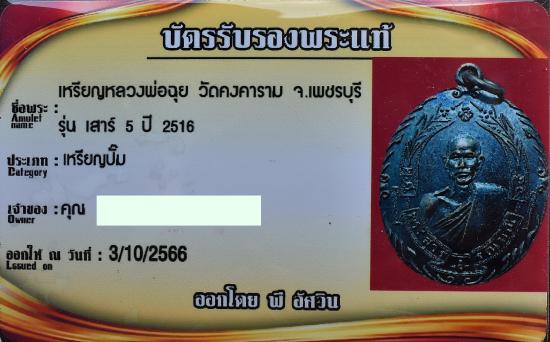 เหรียญเสาร์ห้า เนื้อทองแดง ปี 2516 อนุสรณ์ครบรอบ 50 ปี การจากไปของ หลวงพ่อฉุย วัดคงคาราม จ.เพชรบุรี + บัตรรับรองพระแท้