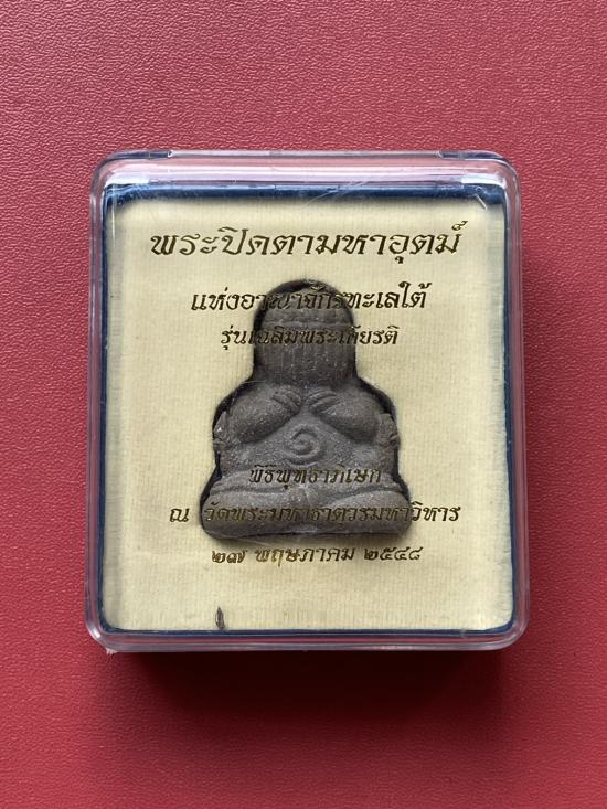 เคาะเดียวแดง ปิดตา มหาอุตม์ อาณาจักรทะเลใต้ รุ่น เฉลิมพระเกียรติ ปี48 เนื้อ ดินผสมว่านตะกรุดเงินคู่ มีโค๊ตและหมายเลข |