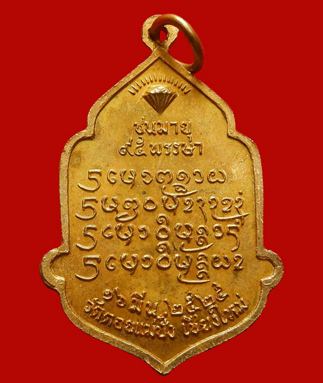 เหรียญหลวงปู่แหวน ๙๕ พรรษา กะไหล่ทอง วัดดอยแม่ปั๋ง จังหวัดเชียงใหม่ ปี๒๕๒๕ พิธีใหญ่มากมีหลวงปู่ดู่ร่วมพิธีปลุกเสก กะไล่แห้งเก่า สวยๆดุจเหรียญเนื้อทองคำ แกะพิมพ์ได้เหมือนหลวงปู่มากๆค่ะ..+ บัตรรับรอง G-Pra