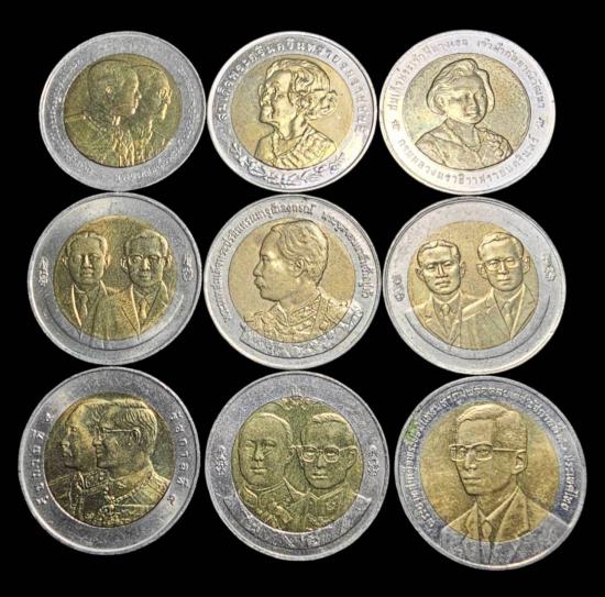 เหรียญ10บาท2สี เหรียญสะสมหลายวาระจำนวน9เหรียญ. ชุด2 |
