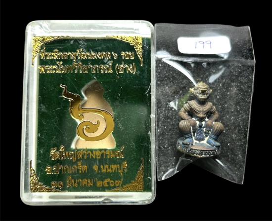 หนุมานหล่อลอยองค์ หลวงพ่ออ่าง วัดใหญ่สว่างอารมณ์ รุ่น 6 รอบ "เนื้อมหาชนวน" (เทนำฤกษ์ในพิธี) สุดยอดเลขมงคล "199"