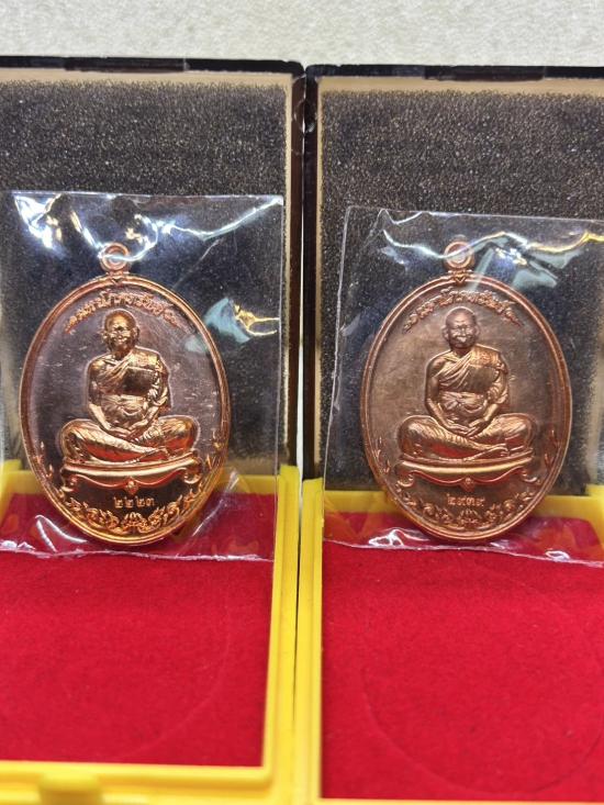 เหรียญมหาโภคทรัพย์ หลวงพ่อทองสุข เนื้อทองแดงผิวไฟส้ม หมายเลข 2223 กับ 2939 จำนวน 2 เหรียญ พร้อมกล่องเดิม รับปคะกันตามกฎ |