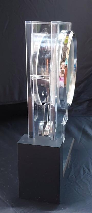 นาฬิกาตั้งโต๊ะของแบรนด์แฟชั่น ESPRIT ซึ่งเป็นรุ่นลิมิเต็ดอิดิชั่นที่มีตัวเรือนเป็นอะคริลิกใสและมาพร้อมกับลูกตุ้มแกว่ง โดยนาฬิกาประเภทนี้มักเป็นของสะสมที่ได้รับความนิยมสำหรับผู้ที่ชื่นชอบงานดีไซน์ยุค 90.
