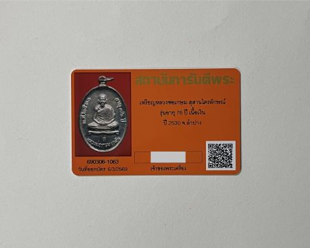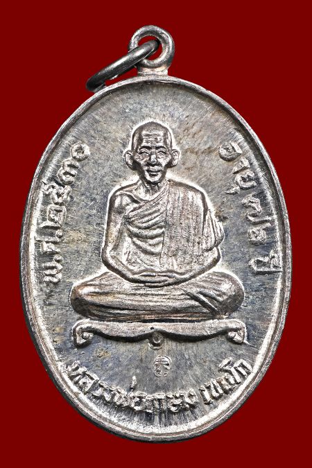 เหรียญฉลองอายุ 76 ปี หลวงพ่อเกษม ปี 2530 เนื้้อเงิน (ตอก 3 โค๊ด) พร้อมบัตรรับรอง G