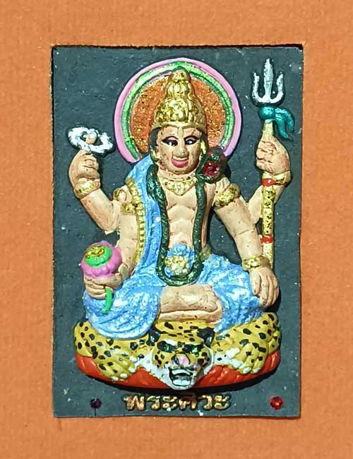 แบ่งปัน พระศิวะ รุ่น มหาเทพบันดาลโชค ครูบากฤษณะ อินทวัณโณ สำนักสงฆ์เวฬุวัน จ.นครราชสีมา ปี2555 เนื้อว่านดำเพ้นท์สี ด้านหน้าฝังพลอยด้านหลังฝังตะกรุดเงิน 1 ดอก