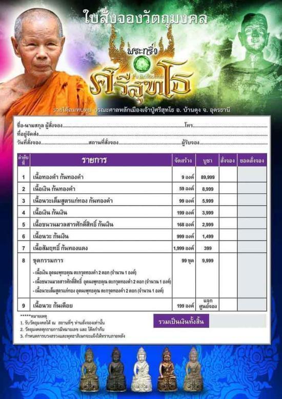 พระกริ่่่งศรีสุทโธ เนื้อนวะโลหะก้นเงิน หลวงปู่บัว ถามโก วัดศรีบูรพาราม จ.ตราด ปี60 สร้าง 999 องค์ ราคาจอง 1499 บาท หมายเลข 635 เคาะเดียวแดงรู้เรื่อง ไม่มีลีลา ไม่ต้องวัดตาวัดใจ แท้ทันประกันให้ ไม่ต้องไปถึงวัด