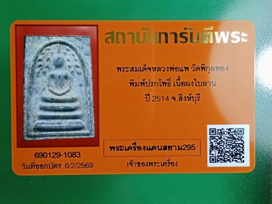 พระสมเด็จปรกโพธิ์ รุ่นแรก เนื้อผงใบลาน ปี ๒๕๑๔ ที่ระลึกหลวงพ่อแพเดินทางจาริกแสวงบุญไปนมัสการสังเวชนียสถานสี่ตำบล ณ ดินแดนพุทธภูมิ สถานที่ประสูติ ลุมพินีวัน สถานที่ตรัสรู้ ต้นพระศรีมหาโพธิ์ พุทธคยา สถานที่โปรดปัญจวัคคีย์ แสดงธรรมครั้งแรก ณ ธัมเมกสถูป สารนาถ และสถานที่เสด็จดับขันธ์ปรินิพพาน ณ สาลวโนทยาน กุสินารา พระสมเด็จรุ่นนี้มีประสบการณ์มาก บรรจุตะกรุด ๓ กษัตริย์ ทองคำแท้ นากแท้ และเงินแท้ ทองคำมีความบริสุทธิ์กว่า ๙๐% ปัจจุบันหายากแล้ว เพราะไปอยู่กับชาวจีน สิงคโปร์ มาเลเซียเป็นส่วนใหญ่ มาพร้อมบัตรรับรองจากสถาบันการันตีพระ