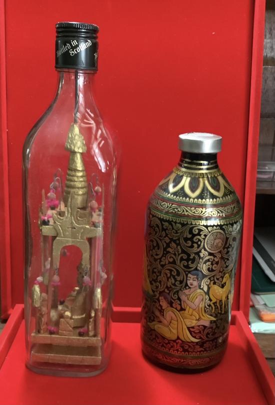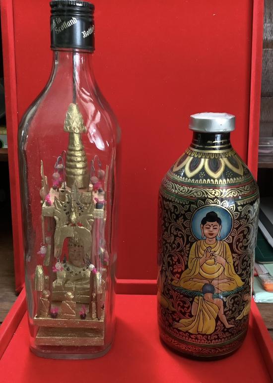 (เคาะเดียวแดง) พระมหามุนี กับภาพวาด พระพุทธเจ้ากับอัครสาวก ในขวดแก้ว งานฝีมือจากพม่า