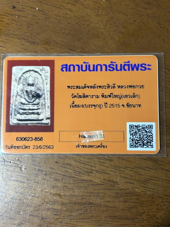 พระสมเด็จหลังสิวลีหลวงพ่อกลัวย