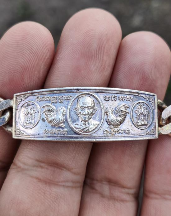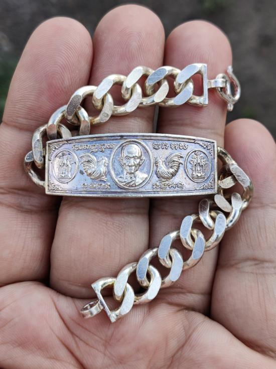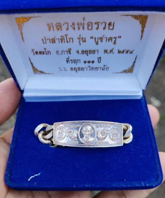 หลวงพ่อรวย วัดตะโก จ.อยุธยา เลสข้อมือ รุ่นบูชาครู ปี2558 เนื้อเงิน ขนาด2บาท ทันหลวงพ่อเสก