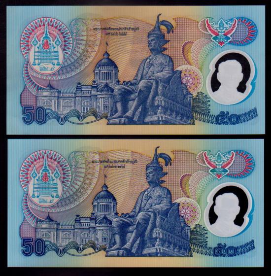 ## ธนบัตร 50 บาท ## กาญจนา ## 2 ฉบับ ## ไม่ผ่านการใช้ |
