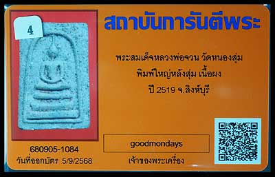 สมเด็จหลังสุ่ม พิมพ์ใหญ่ ปี2519 หลวงพ่อจวน วัดหนองสุ่ม สิงห์บุรี