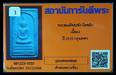 สมเด็จอรหัง ปี2516 วัดพลับ กทม ลป.โต๊ะ ปลุกเสกตลอดไตรมาส