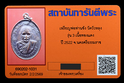เหรียญ"รุ่น๓"พระครูอรรถธรรมรส (พ่อท่านซัง) วัดวัวหลุง จ.นครศรีธรรมราช ปี ๒๕๒๒.."บล๊อกนิยมเสาอากาศ"..สำหรับเหรียญรุ่นนี้นับเป็นเหรียญที่มีประสบการณ์อีกรุ่นหนึ่งในชุดเหรียญพ่อท่านซัง โดยเหรียญรุ่นนี้ตามประวัติขออนุญาติสร้างเพียง ๑๐,๐๐๐ เหรียญ เมื่อครบตามจำนวนที่ขออนุญาติพ่อท่าน ฯแล้วบล็อกก็แตก..โดยมีวัตถุประสงค์สร้างเพื่อแจกสำหรับผู้มีใจศรัทธาในการสร้างกำแพงวัดวัวหลุง..สำหรับเหรียญรุ่นแรกของพ่อท่านซังในสภาพสวยๆราคาแทบไม่ต้องพูดถึงขนาดเหรียญรุ่นสองซึ่งสร้างไม่ทันท่านแถบยังย้อนพ.ศ ขึ้นมาอีก โดยปกติถ้าเป็นเหรียญย้อนพ.ศ. คนจะไม่เล่นหากันแต่เหรียญรุ่นสองด้วยประสบการณ์ที่ชัดเจน สวย ๆ ตอนนี้ราคาเดินทางไกลแล้วเหมือนกันครับ..สำหรับเหรียญรุ่น๓สภาพสวยๆจะหาดูยากเหมือนกันคนพื้นที่หวงแหนกันมากเพราะจากประสบการณ์ที่เกิดขึ้นอยู่บ่อยๆ เหรียญประสบการณ์อีกรุ่นที่มีเรื่องเล่าขานกันมานานเรื่องประสบการณ์ไม่แพ้รุ่นไหนเลย ที่สำคัญที่ค่อนข้างหายากแล้วครับ "รุ่นนี้ ขอบอกไม่ผิดหวัง..เหรียญนี้สภาพสวยส่องตะแคงมีผิวรุ้งสวยงาม..อนาคตดีแน่นอนและพระสวยหายากขึ้นทุกวันแล้วครับ***รับประกัน*** |