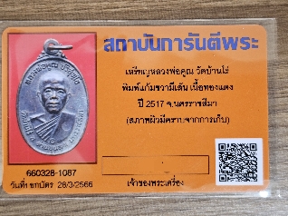 เหรียญหลวงพ่อคูณ ปี2517 มีจาร พร้อมบัตรรับรอง