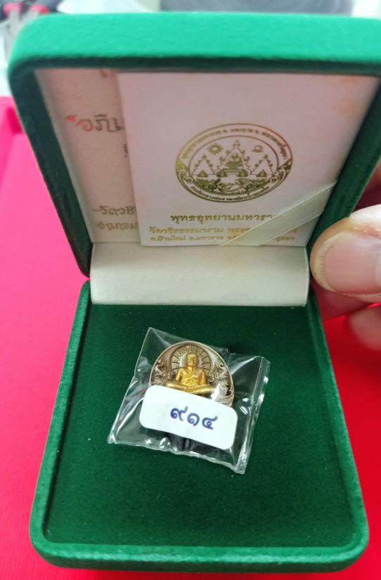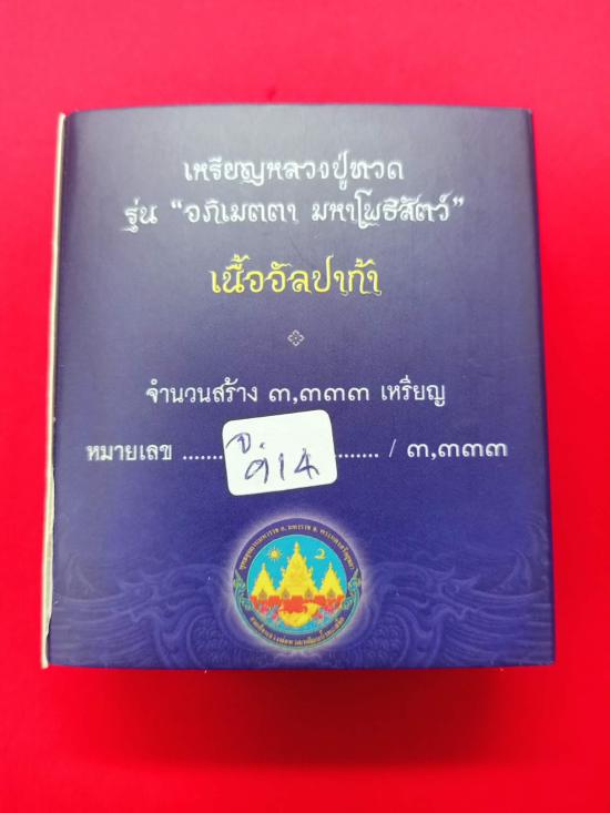 เหรียญหลวงปู่ทวดรุ่น "อภิเมตตา มหาโพธิสัตว์" พิมพ์จิ๋ว เจริญลาภ เจริญยศ เนื้ออัลปาก้า องค์กะไหล่ทองคำ หมายเลข ๙๑๔ ซีลเดิมๆ พร้อมกล่องเดิม