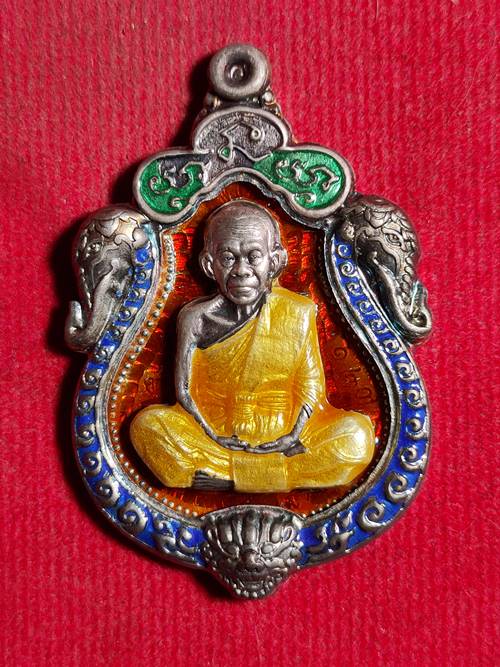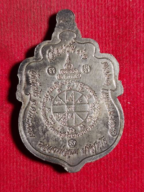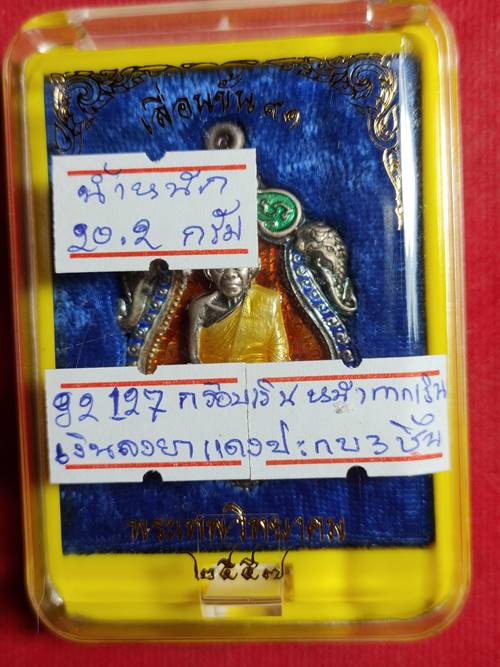 เหรียญเสมาเลื่อนขั้น 91 หลวงพ่อคูณ ปริสุทโธ ออกวัดบ้านไร่ ปี 2557 เนื้อ เงินลงยาสีแดงปะกบ 3 ชิ้น หรอบเงินลงยาหน้ากากเงินจีวรเหลือง หมายเลข 127 สภาพสวย เคาะเดียวแดง