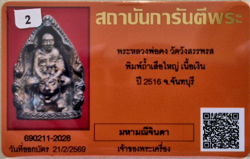 เหรียญหล่อ หลวงพ่อคง วัดวังสรรพรส พิมพ์ถ้ำเสือใหญ่ ปี 2516 เนื้อเงิน สภาพสวย สร้างน้อย พร้อมบัตรรับรองครับ