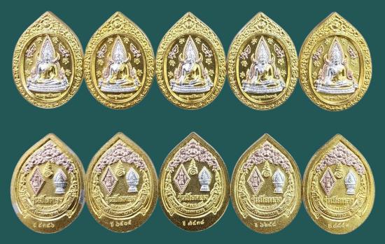 ( 5 องค์ ) เหรียญพระพุทธชินราช พิมพ์ รูปไข่ พิมพ์เล็ก เนื้อสามกษัตริย์ รุ่น ปิดทอง ปี 2547 สภาพสวยเดิมๆ มีโค๊คทุกองค์ครับ ( พระรุ่นนี้มีส่วนผสมจากแผ่นทองคำเปลวที่ลอกมาจากองค์พระพุทธชินราชครับ