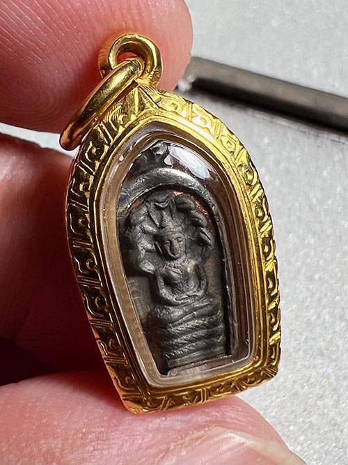 ปรกใบมะขาม ปี21 เนื้อนวะ สภาพสวย ใบหน้าคมชัด จมูกโด่งๆ มีเลี่ยมเดิมจากวัด พร้อมเลี่ยมทองงามๆ (มีบัตรรับรองพระแท้)
