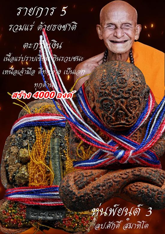 หุ่นพยนต์ รุ่น 3 กูผู้ชนะ ปราบไพรีพินาศ หลวงปู่ศักดิ์ สมาหิโต รายการ 5 รวมแร่ ด้ายธงชาติ ตะกรุดเงิน เนื้อแร่ปราบเซียนกินรวบชนะเหนือเจ้ามือ ดีทุกอย่าง เป็นเอกทุกด้าน ซีลเดิมแกะลุ้นเลขเอง 1 ลุ้น