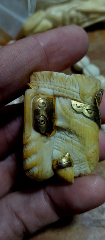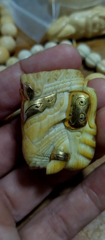 หัวช้างงาแกะหัวใหญ่ๆ พร้อมทองคำแท้ ไม่ทราบน้ำหนักทอง