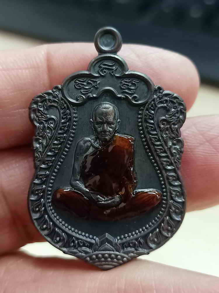 วัดใจ 100 เหรียญเสมา 8 รอบ หลวงปู่เกษม เขมจาโร วัดมะม่วงตลอด จ.นครศรีธรรมราช 2567 ชนวนรมดำ ลงยาจีวร หมายเลข 122 กล่องเดิม