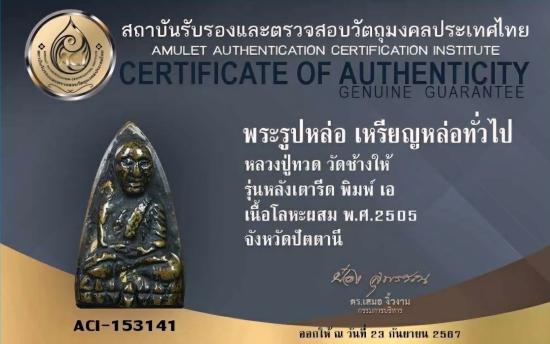 หลวงปู่ทวดหลังเตารีดพิมพ์A เนื้อโลหะผสม ปี2505 สภาพเดิมๆคลาบเบ้ายังติดอยู่ พร้อมเลี่ยมทอง
