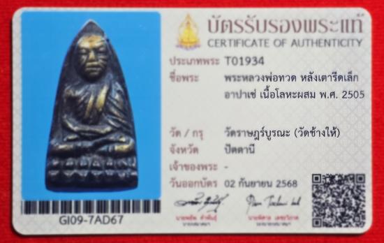 หลวงปู่ทวด 2505 เตารีดเล็ก อาปาเช่ เนื่อโลหะผสม พร้อมเลี่ยมทองปิดหลัง รับประกันตามกฏจีพระ