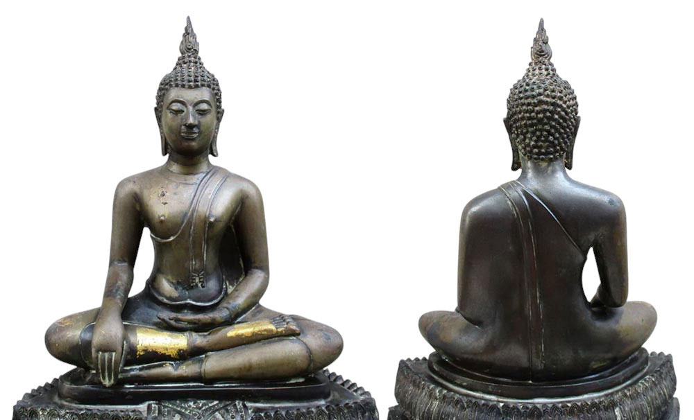 พระบูชพระประธาน วัดไผ่ล้อม จ.อยุธยา รุ่นแรก พ.ศ.2541 หน้าตัก 9 นิ้ว เนื้อโลหะทองผสมรมดำ ผิวแห้งหิ้ง !!