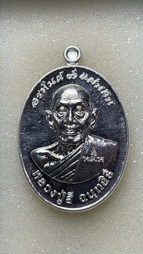 เหรียญรูปไข่ครึ่งองค์เนื้อเงินหลวงปู่สีวัดถ้ำเขาบุญนาครุ่นอรหันต์ 7 แผ่นดินปี2558 |