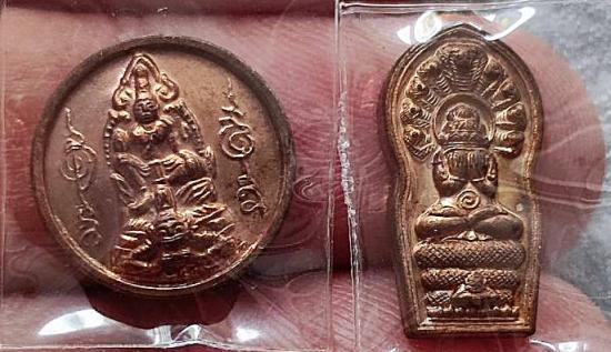 ปรกใบมะขามปิดตาพังพะกาฬ รุ่นสองแผ่นดิน ปี 2548 และ เม็ดกระดุม รวย รุ่นเพชร 3 สมุทร บันดาลโชค ปี 2549 รวม 2 องค์