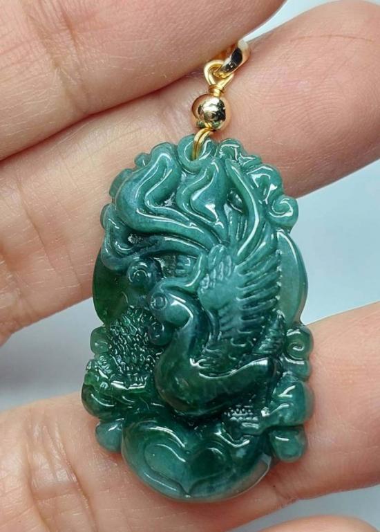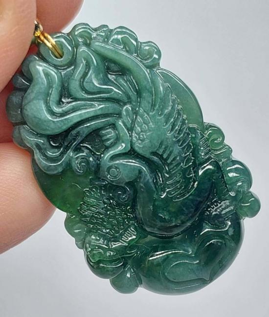 ***วัดใจ***จี้หยก แกะสลักรูปหงส์ สี 2โทน สุง 3.2 ซม.