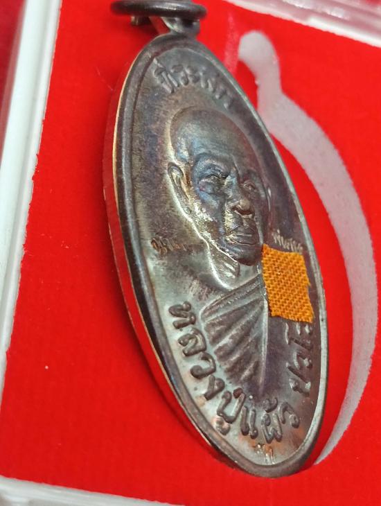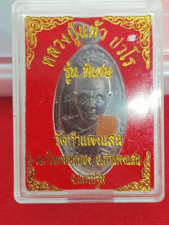 หลวงปู่แผ้ว เหรียญใบขี้เหล็ก รุ่นพิเศษ วัดกำแพงแสน เนื้อทองแดง ตอกโค้ต นำฤกษ์ พิเศษ ติดจีวร ปี 2557 พร้อมกล่องเดิม