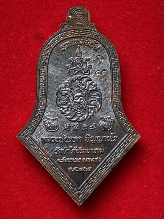เคาะเดียวแดง หลวงปู่บุดดา ท้าวเวส รุ่น รวยเหลือล้น เนื้อ นวะโบราณ หน้ากากเงินลงยาขอบแดง |
