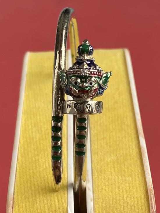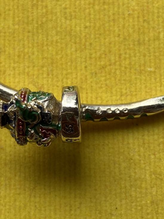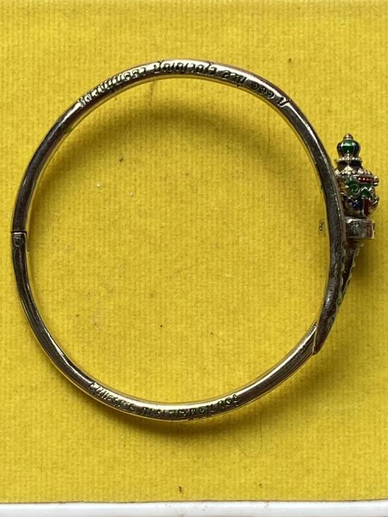 เคาะเดียวแดง หลวงปู่บุดดา กำไลท้าวเวส เนื้อ ทองขาวขัดเงาลงยาเขียว |