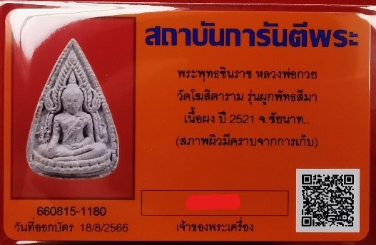 พระพุทธชินราช หลวงพ่อกวย วัดโฆสิตาราม รุ่นผูกพัทธสีมา เนื้อผง ปี2521 จ.ชัยนาท พร้อมบัตรรับรองครับ