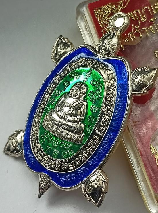 (เลขเดี่ยวสวย เบอร์3) เหรียญพญาเต่าเรือน (จัมโบ้) หลวงปู่แสน วัดบ้านหนองจิก รุ่น สร้างโบสถ์ เนื้อเงินลงยา2สี เบอร์ 3 พร้อมกล่องครับ (เหรียญจริงใหญ่ น้ำหนัก 29.05 กรัม)