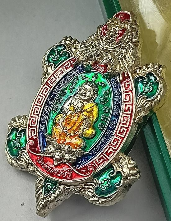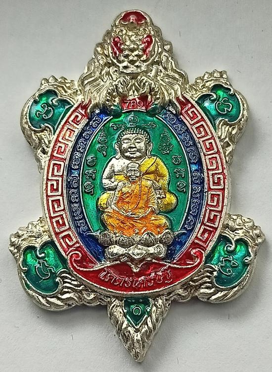 เหรียญเต่ามังกร "โคตรเศรษฐี" หลวงปู่แสน วัดบ้านหนองจิก เนื้อเงินลงยา3สี เบอร์ 15 พร้อมกล่องเดิมครับ (น้ำหนัก 23.10 กรัม)